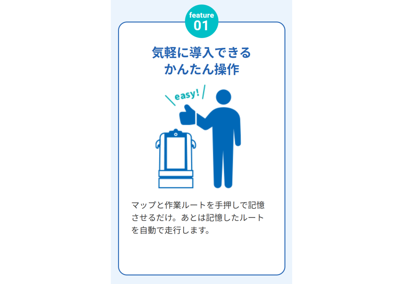 「かんたん操作」「安全対策」「安心のサポート体制」を実現。お客さまの業務効率向上と人手不足の解消を支援します。
