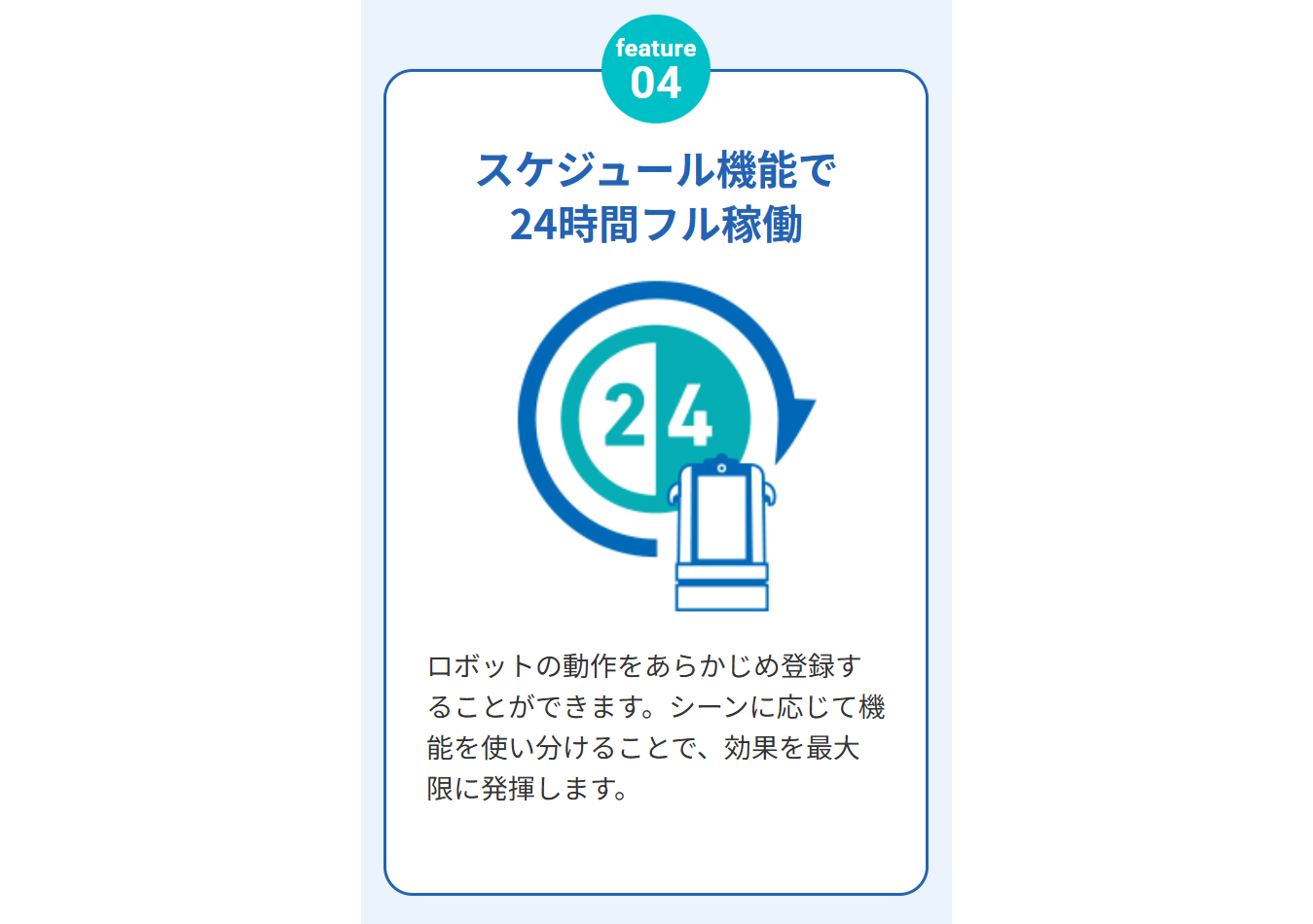 ロボットの動作をあらかじめ登録することができます。シーンに応じて機能を使い分けることで、効果を最大限に発揮します。
